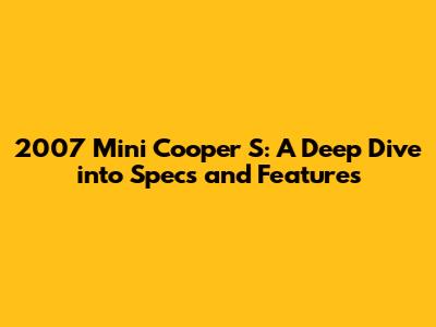 2007 Mini Cooper S: Specs, Features, And More!