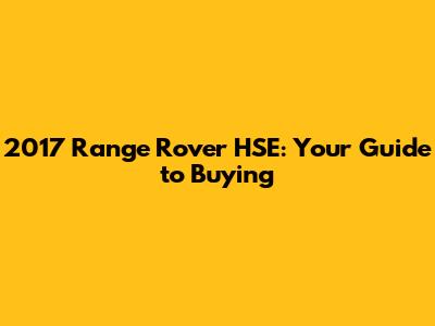 Hey guys! Thinking about snagging a 2017 Range Rover HSE? Awesome choice! These SUVs are seriously luxurious and packed with features. But before you dive in, let's break down everything you need to know to make a smart purchase. This guide will walk you through the key aspects, helping you navigate the market and find the perfect Range Rover HSE for you. From understanding the HSE trim to checking the vehicle's history, we'll cover it all. So, buckle up, and let's get started on your journey to owning a fantastic 2017 Range Rover HSE!