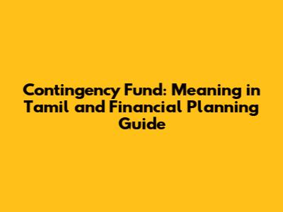 Contingency Fund Explained: Tamil Meaning & Financial Planning