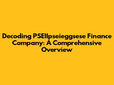 Decoding PSEIIpseieggsese Finance Company: A Comprehensive Overview