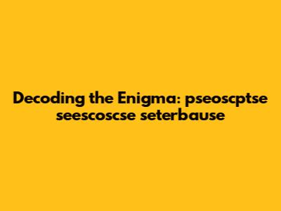 Decoding The Enigma: Pseoscptse Seescoscse Seterbause