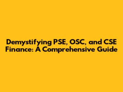 Hey everyone! Let's dive into the often-confusing world of PSE, OSC, and CSE finance. I know, the abbreviations can seem like a secret code, but trust me, it's not as scary as it looks. In this guide, we'll break down what these terms mean, how they relate to each other, and why you should care. Whether you're a seasoned investor, a budding entrepreneur, or just someone trying to make sense of the financial jargon, this article is for you. We'll explore the core concepts, discuss their applications, and highlight their significance in today's financial landscape. So, buckle up, grab a coffee (or your favorite beverage), and let's get started on this exciting journey of unraveling the complexities of PSE, OSC, and CSE finance.