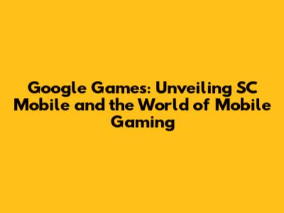 Google Games: A Guide To SC Mobile & Mobile Games