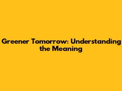 Greener Tomorrow: Understanding The Meaning