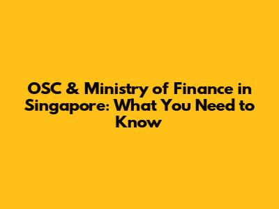 OSC & Ministry Of Finance In Singapore: What You Need To Know