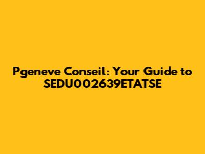 Pgeneve Conseil: Your Guide To SEDU002639ETATSE