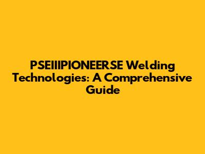 PSEIIIPIONEERSE Welding Technologies: A Comprehensive Guide