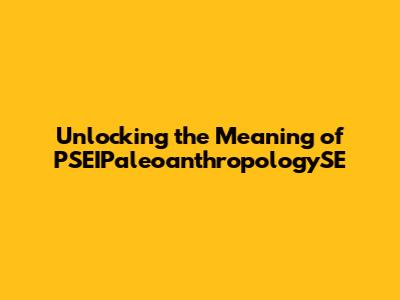 Unlocking The Meaning Of PSEIPaleoanthropologySE