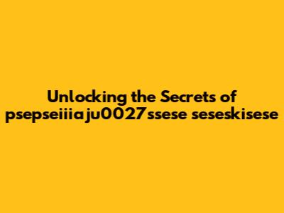 Unlocking The Secrets Of Psepseiiiaju0027ssese Seseskisese