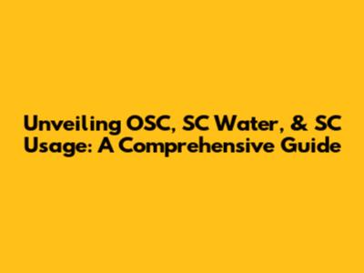 Unveiling OSC, SC Water, & SC Usage: A Comprehensive Guide