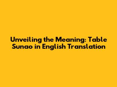 Hey everyone! Today, we're diving into something super interesting – the translation of “table sunao” into English. This phrase might seem a bit mysterious at first, but trust me, it’s got a cool depth to it. We're going to break down what it means, look at some examples, and explore why understanding this translation is more important than you might think. So, grab your favorite drink, sit back, and let's get started on this language adventure!