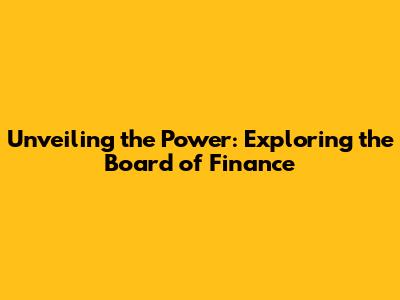 Unveiling The Power: Exploring The Board Of Finance