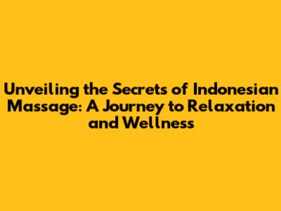 Unveiling The Secrets Of Indonesian Massage